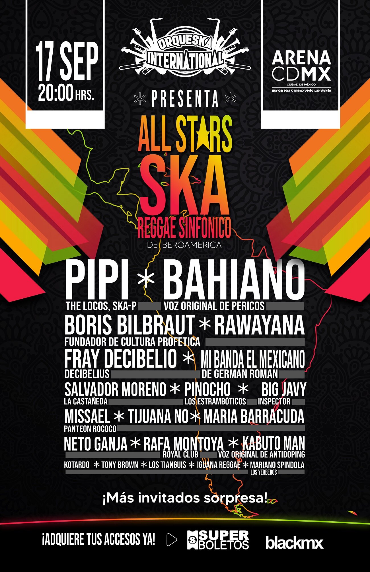 Con las voces originales que representan el movimiento del ska y el reggae en hispanoamérica como Boris Bilbraut (Cultura Profética), Bahiano (Los Pericos), Pipi (The Locos, Ska-P), Tijuana No!, Missael (Panteón Rococo), Pino Ruelas (Los Estrambóticos), que conquistaron a más de una generación con sus letras, se creará una mágica experiencia que podrás ver por…