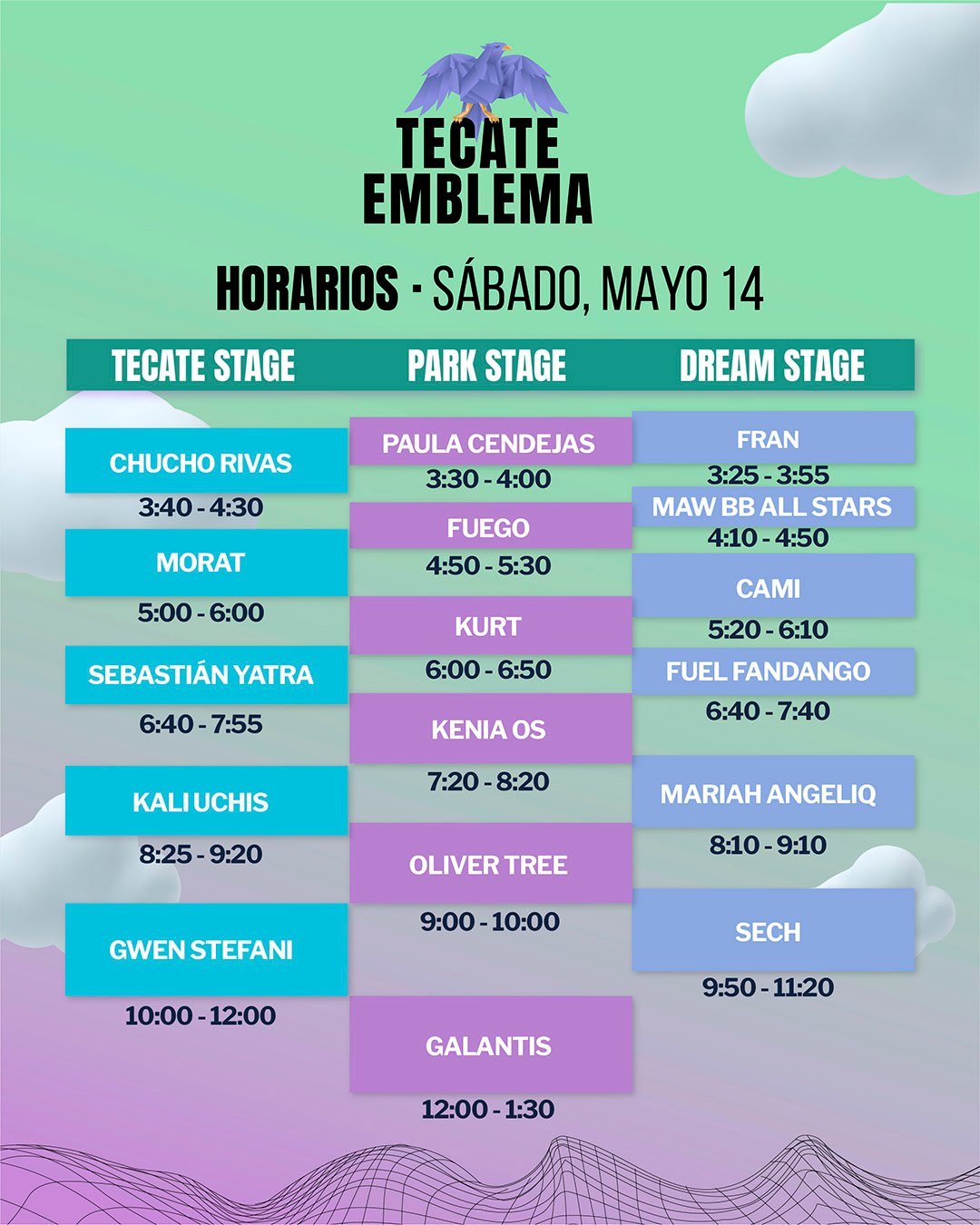 Por lo que podemos ver, el Tecate Emblema será un festival que dará de mucho de qué hablar, con buenos artistas de talla nacional e internacional. Sigue nuestra cobertura a través de las redes sociales de Tiqfun. ¡Esperamos verlos por allá! Acá te dejamos los horarios de este día:
