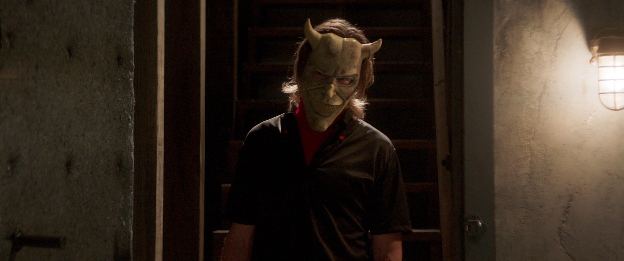 Cuando finalmente decide contestar, escucha los susurros y balbuceos de un niño (y después de otros) víctimas previas y perdidas que quedaron impregnados en las paredes del sótano donde se encuentra.